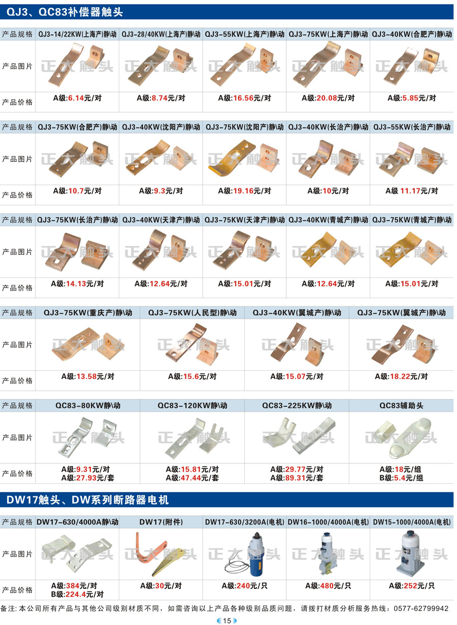 QJ3、QC83補(bǔ)償器觸頭、DW17觸頭、DW系列斷路器電機(jī)