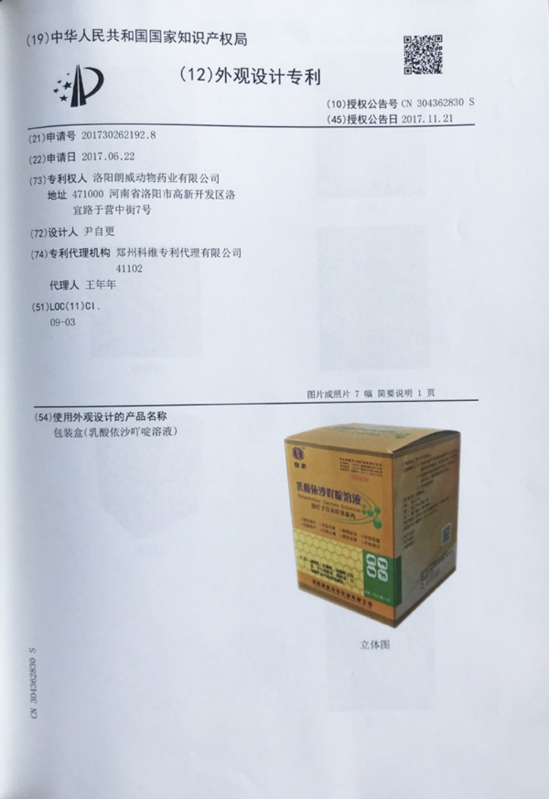 乳酸依沙吖啶專利證書