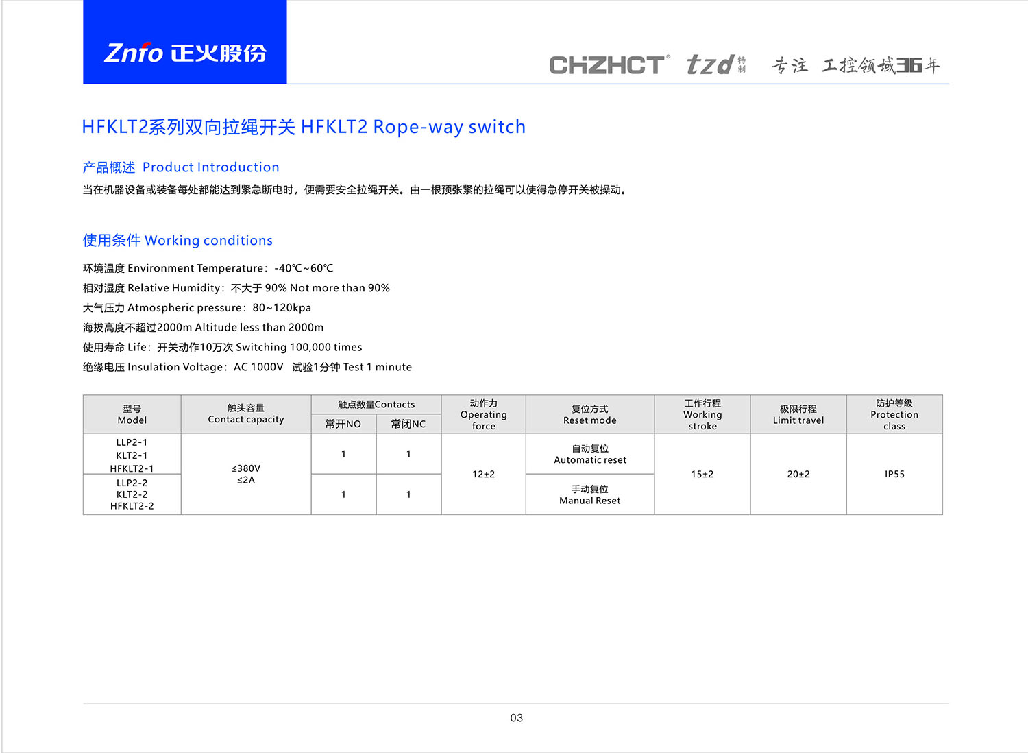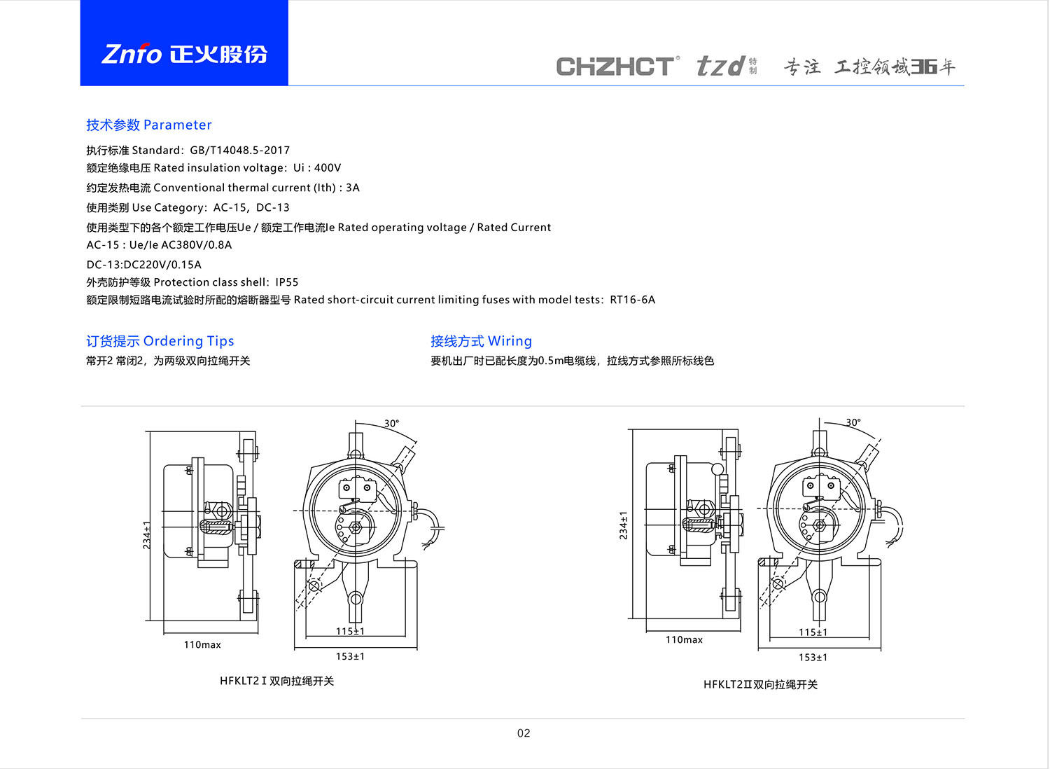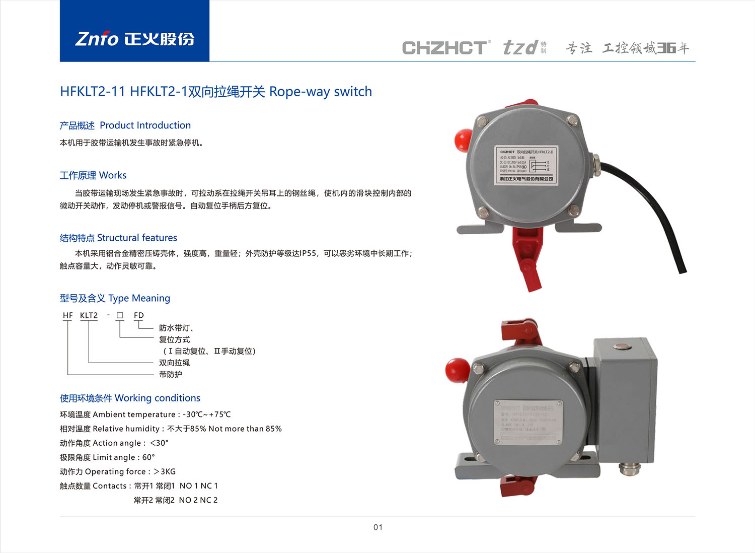 HFKLT2雙向拉繩開關(guān) 產(chǎn)品說明書