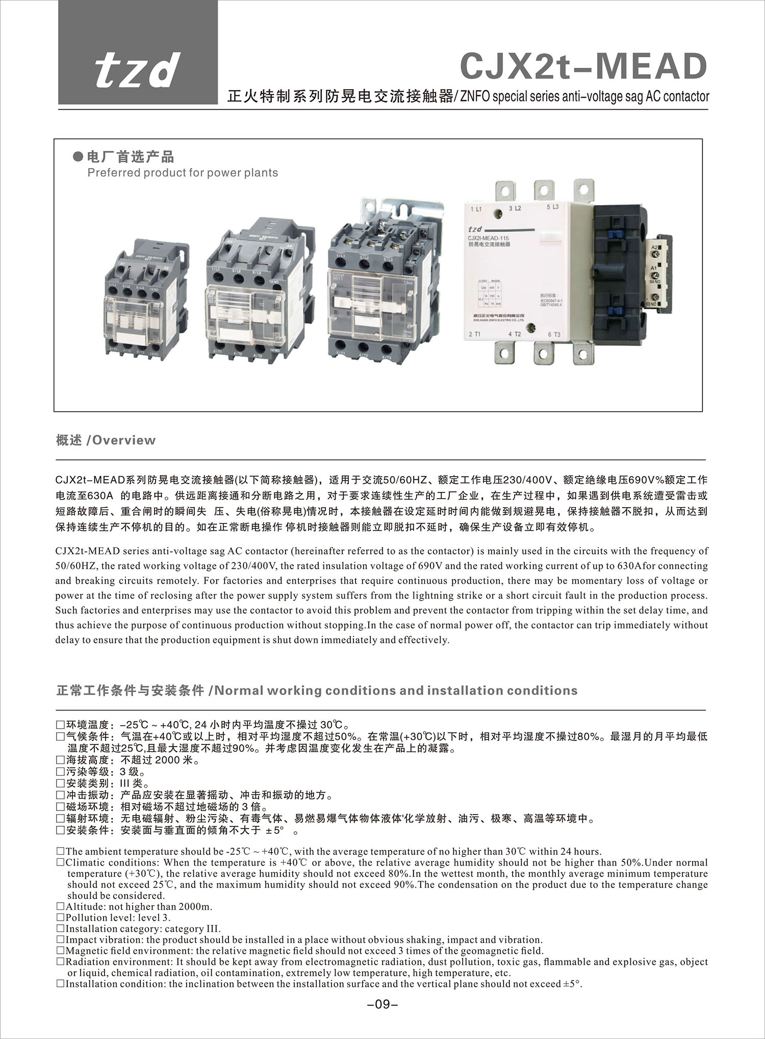 CJX2t-MEAD 正火特制系列防晃電交流接觸器產(chǎn)品說明書